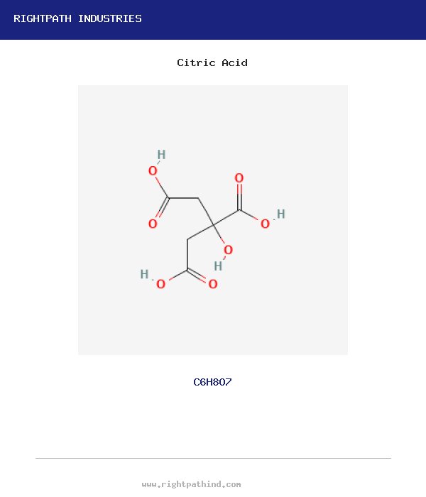Citric acid (CAS 77-92-9) is a weak organic acid found naturally in citrus fruits, widely used as a food additive, cleaning agent, and chemical intermediate. RightPath Industries supplies citric acid in food grade, USP, and technical grades for diverse applications.