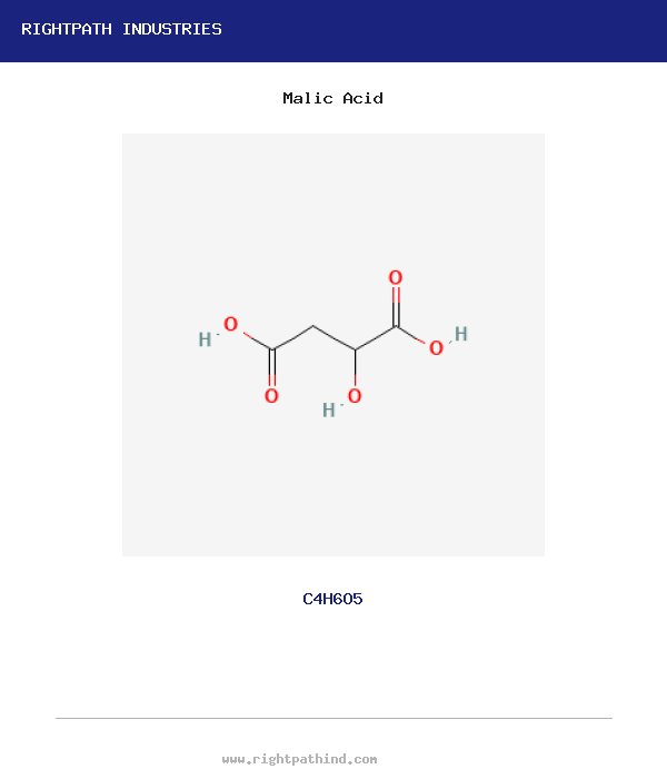 Malic acid (CAS 6915-15-7) is a naturally occurring dicarboxylic acid found in apples and many fruits, widely used as a food acidulant and flavor enhancer. RightPath Industries supplies malic acid in food and technical grades.