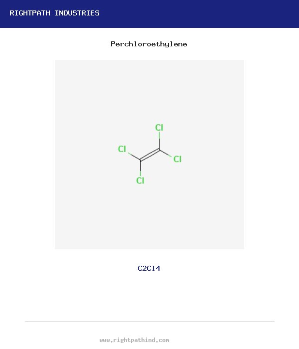 Perchloroethylene (CAS 127-18-4), also known as tetrachloroethylene or PERC, is a chlorinated solvent used in dry cleaning and metal degreasing. RightPath Industries supplies perchloroethylene for industrial cleaning.